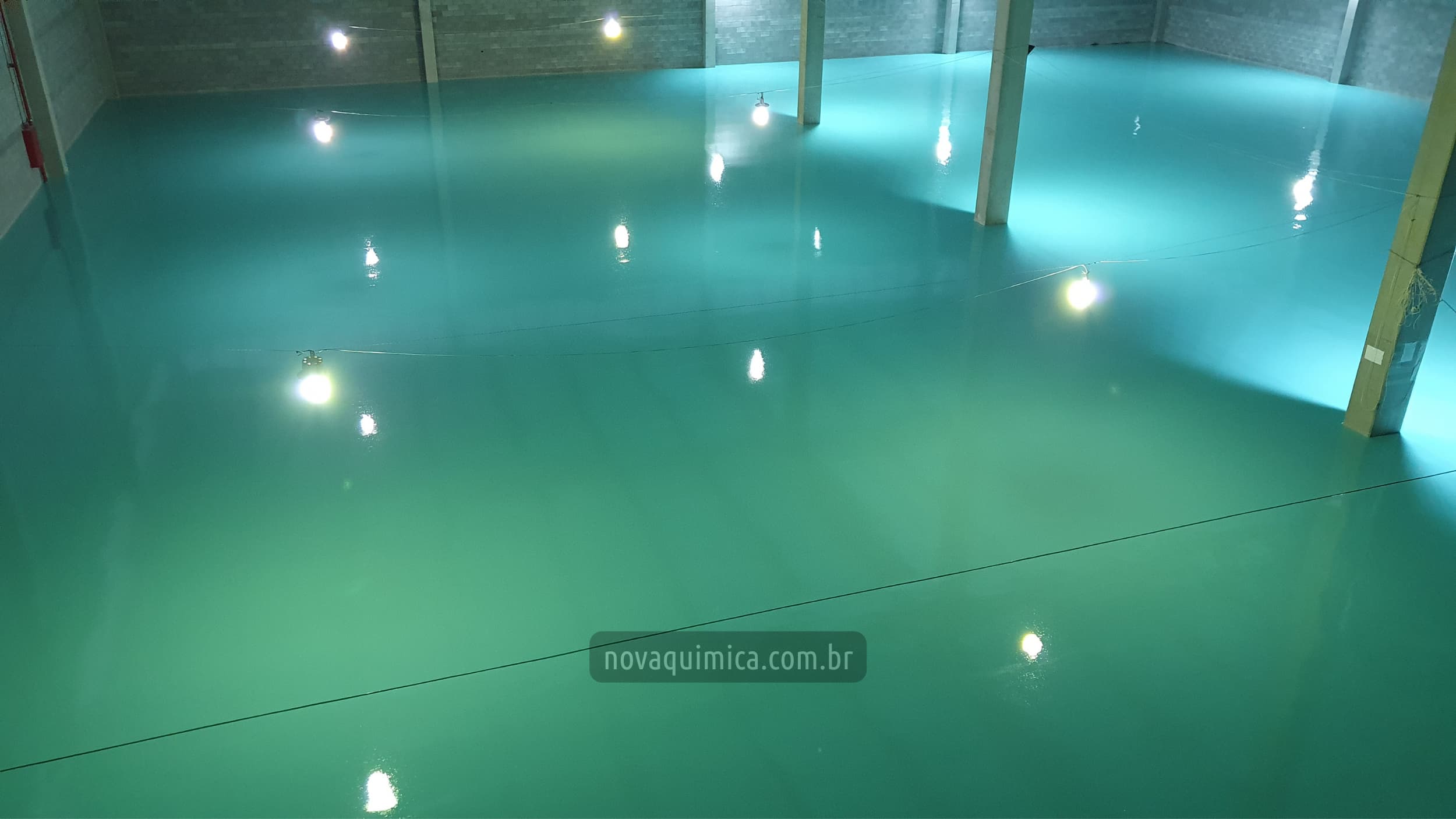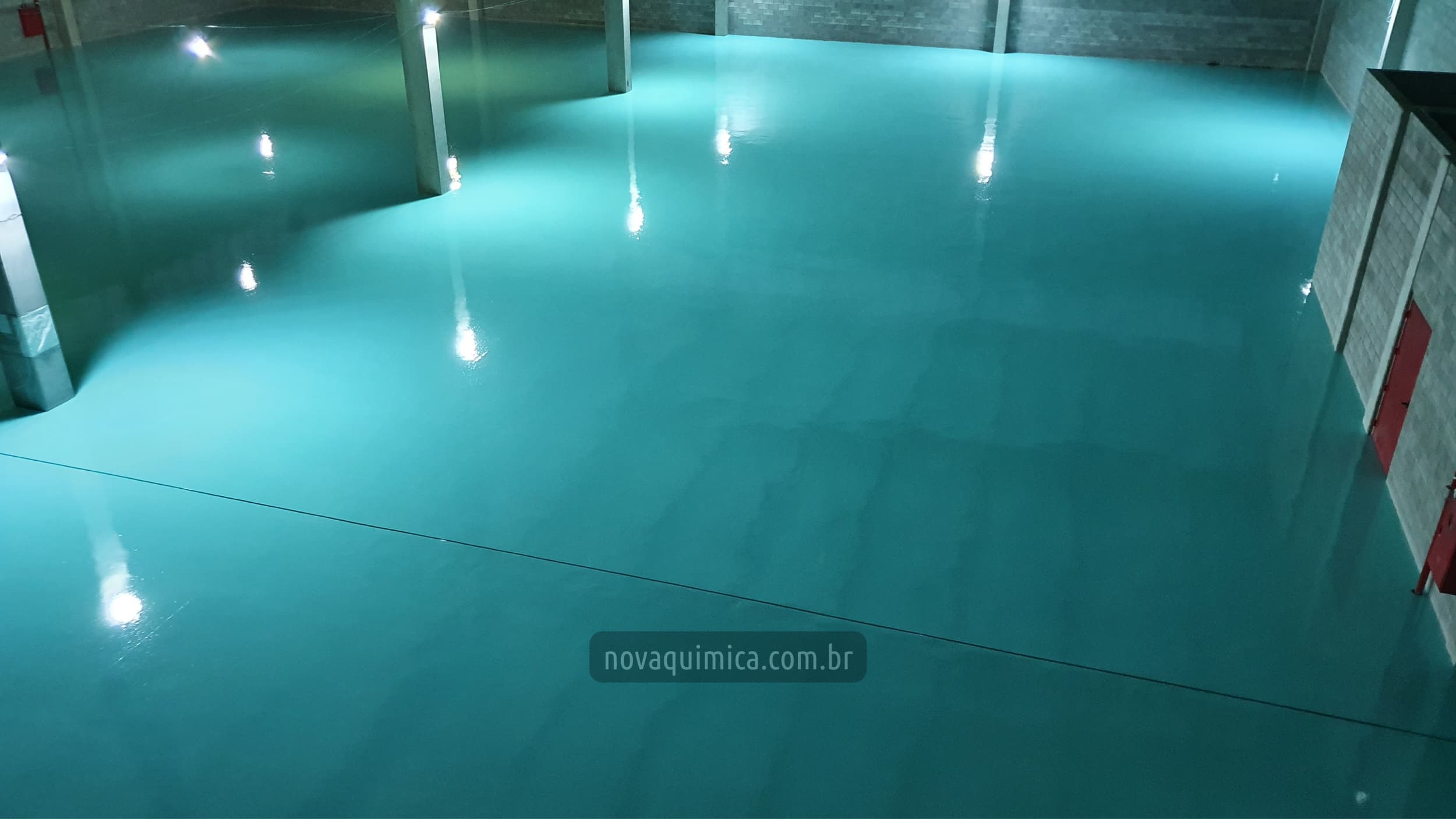 Pintura epóxi em chão de fábrica.